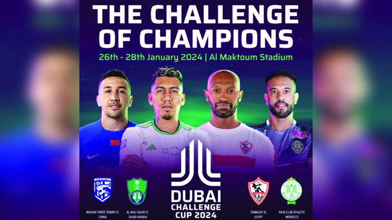 أعلن مجلس دبي الرياضي إقامة مؤتمر صحافي يوم غدٍ في مقره عند الساعة 11 صباحاً، للكشف عن تفاصيل بطولة كأس دبي للتحدي لكرة القدم، التي تقام على ملاعب استاد آل مكتوم في نادي النصر بدبي، خلال الفترة من 26 إلى 28 يناير الجاري، بمشاركة أندية: الزمالك المصري، والرجاء المغربي، والأهلي السعودي، ووهان ثري تاونز الصيني.