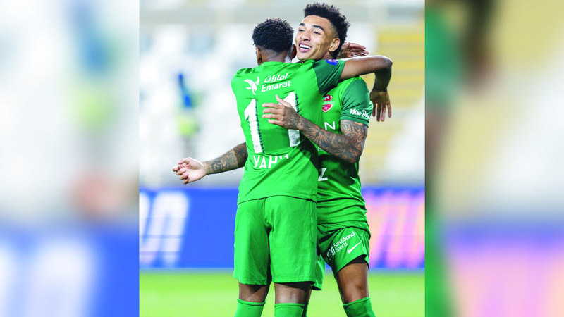 جيسوس والغساني خلال الاحتفال بفوز شباب الأهلي. من المصدر