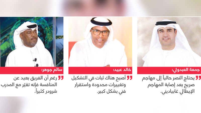 أكد المحلل الفني ومدير فريق النصر السابق، خالد عبيد، أن النصر استفاد كثيراً من فترة التوقف، وتغيّر بشكل كامل، مشيراً إلى أن هناك عوامل كثيرة أسهمت في هذا الأداء، موضحاً أن «الفريق أصبح له شكل جماعي، ويقدم نتائج مع أداء مميز»، وقال عبيد: «أصبح هناك ثبات في التشكيل وتغييرات محدودة واستقرار فني بشكل كبير، وهو ما أسهم في عودة النتائج الإيجابية، خصوصاً بتحقيق فوز على فريق بحجم الجزيرة في ملعبه وهو شيء إيجابي، ثم إن الفوز على بني ياس العنيد دائماً، يؤكد تطور الفريق بشكل كبير». وأضاف: «هناك عامل رئيس آخر أسهم في عودة الاستقرار الفني للفريق وهو عودة اللاعب حسين مهدي، من الإصابة، ما شكل ثباتاً كبيراً لوسط الفريق، كما أن (العميد) يلعب كمجموعة بأداء جماعي، وهناك أداء وشكل للفريق، وقلة في الأخطاء الدفاعية على الرغم من وجود أخطاء فردية، كما أن الفريق أصبح قادراً على استعادة الكرة بعد فقدانها، وهو أمر لم يكن يحدث من قبل، الحديث الآن عن فرق الوسط والقريبة من (العميد)، لكن نتمنى أن ينتقل ذلك إلى فرق الصدارة، ويستمر (العميد) بتقديم المستوى الفني نفسه في المباريات».