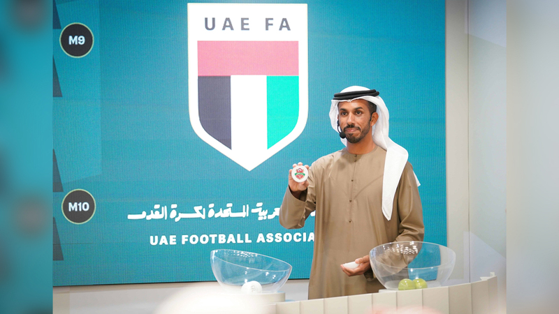 محمد الظاهري خلال سحب قرعة ربع نهائي الكأس بمقر اتحاد كرة القدم. من المصدر
