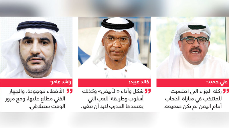 وقالوا لـ«الإمارات اليوم» إن الأخطاء لاسيما الدفاعية والهجومية لاتزال مستمرة، مطالبين مدرب المنتخب البرتغالي باولو بينتو بتغيير صورة «الأبيض» إلى الأفضل، وإيجاد الحلول المناسبة للأخطاء التي ظلت تتكرر من مباراة إلى أخرى، وذلك قبل مباراة الإياب المرتقبة غداً أمام اليمن، التي ستقام في منطقة الخبر بالمملكة العربية السعودية ضمن الجولة الرابعة، في حين يرى آخرون أن المنتخب يسير في الطريق الصحيح، بدليل تصدره لمجموعته بالعلامة الكاملة برصيد تسع نقاط، رغم أنه حالياً بحلة جديدة بعد ضم عناصر صغيرة في السن بحاجة إلى الصبر عليها حتى تكتسب الخبرة المطلوبة.
