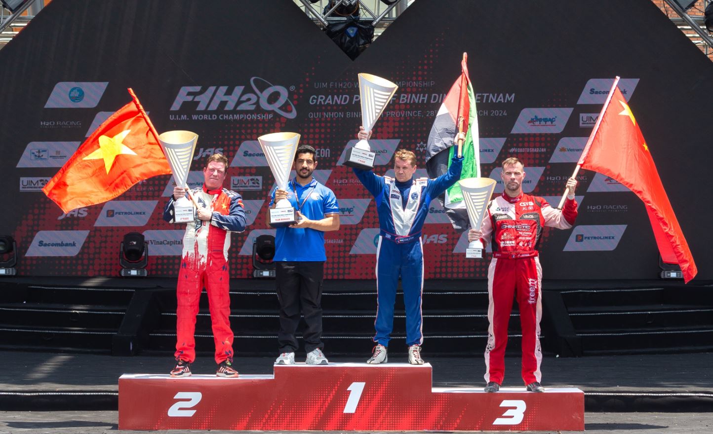 توج زورق «فيكتوري 4» بقيادة المتسابق السويدي إريك ستارك اليوم بطلا لجائزة فيتنام الكبرى للزوارق السريعة في ثاني جولات مونديال «الفورمولا1»، والتي جرت في مقاطعة كوي نون - بينه دينه بمشاركة نخبة الفرق العالمية، تتقدمها فرق الإمارات على متن زوارق فرق فيكتوري وأبوظبي والشارقة.