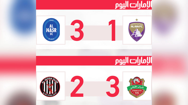 حسم النصر قمة مباريات الجولة الـ18 لدوري أدنوك للمحترفين أمام مستضيفه العين، وفاز عليه 3-1، في المباراة التي جمعتهما أمس على استاد هزاع بن زايد، ليهدي «العميد» الذي وصل إلى النقطة 28 جاره الوصل المتصدر بـ45 نقطة فرصة توسيع الفارق حينما يقابل عجمان مساء اليوم، بينما في المقابل تراجع «الزعيم» إلى المركز الثالث بعد أن تجمد رصيده عند 35 نقطة، في حين تقدم شباب الأهلي إلى الوصافة بوصوله إلى النقطة 37 عقب انتصاره على الجزيرة 3-2 الذي بدوره تجمد رصيده عند 21 نقطة.