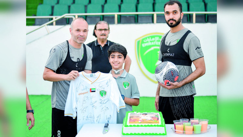 إنييستا يهدي العدوان قميص نادي الإمارات خلال احتفالية خاصة. من المصدر