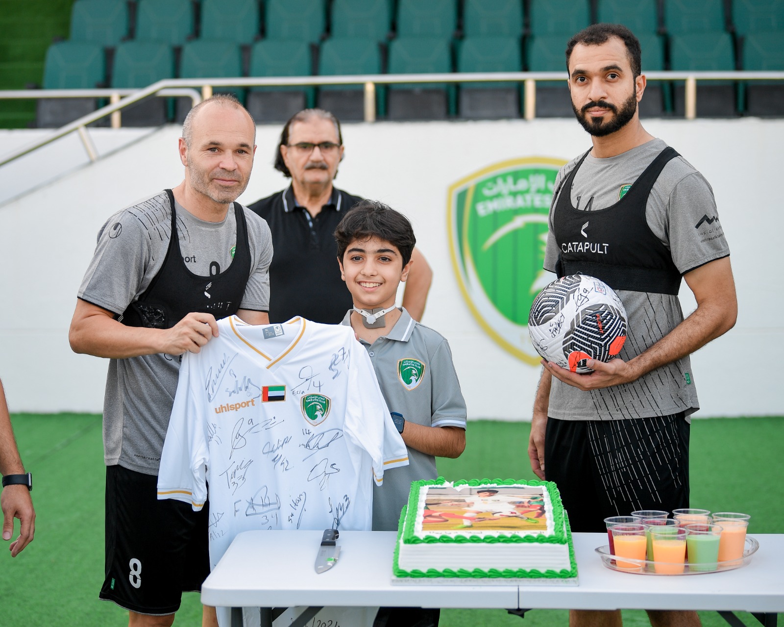 وتضمن برنامج الاستقبال ممر شرفي للاعبي الفريق الأول والنادي للاعب يتقدمهم نجم الصقور العالمي إنييستا ثم تقديم مشاهد احتفالية وإهداء قميص النادي موقع عليه من جميع اللاعبين وقطع كعكة تحمل صورة اللاعب وإهدائه كرة النادي موقع عليها من نجوم الفريق ومواقف جميلة أدخلت البهجة والسرور في قلب اللاعب الصغير.