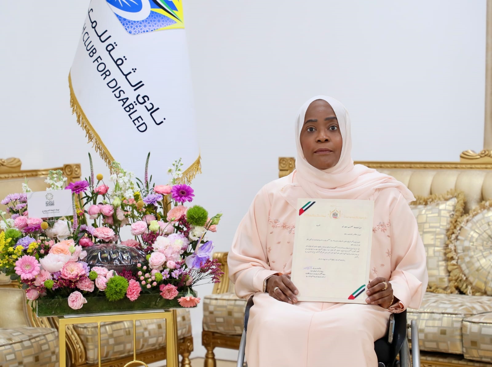 وفد "رياضة المرأة" يسلم كليثم المطروشي رسالة تهنئة من "أم الإمارات"