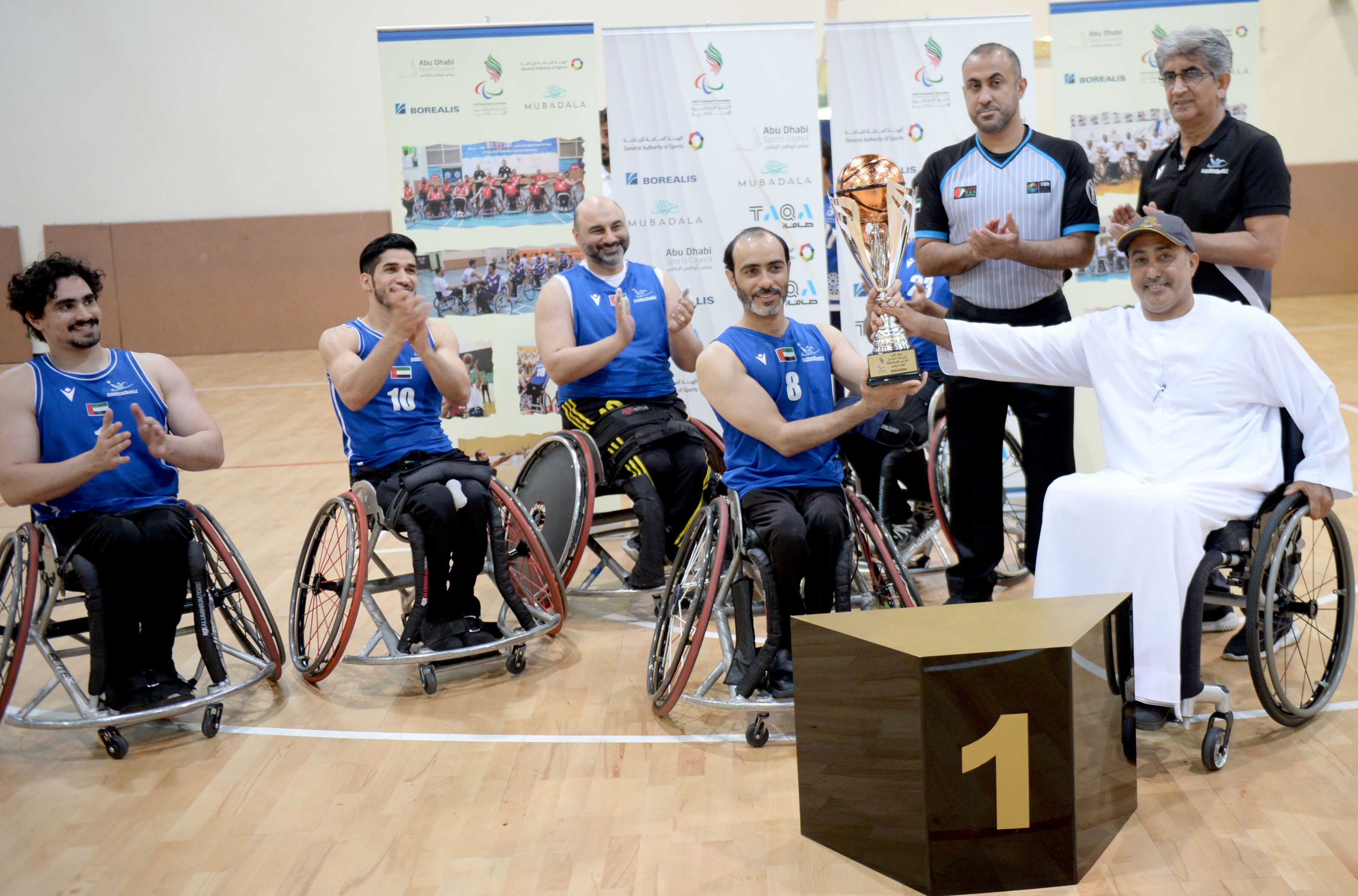 وعقب انتهاء اللقاء قام الأمين العام للجنة البارالمبية الوطنية ذيبان المهيري بتسليم كأس البطولة الأولى للبطولة للاعبي نادي دبي لأصحاب الهمم .