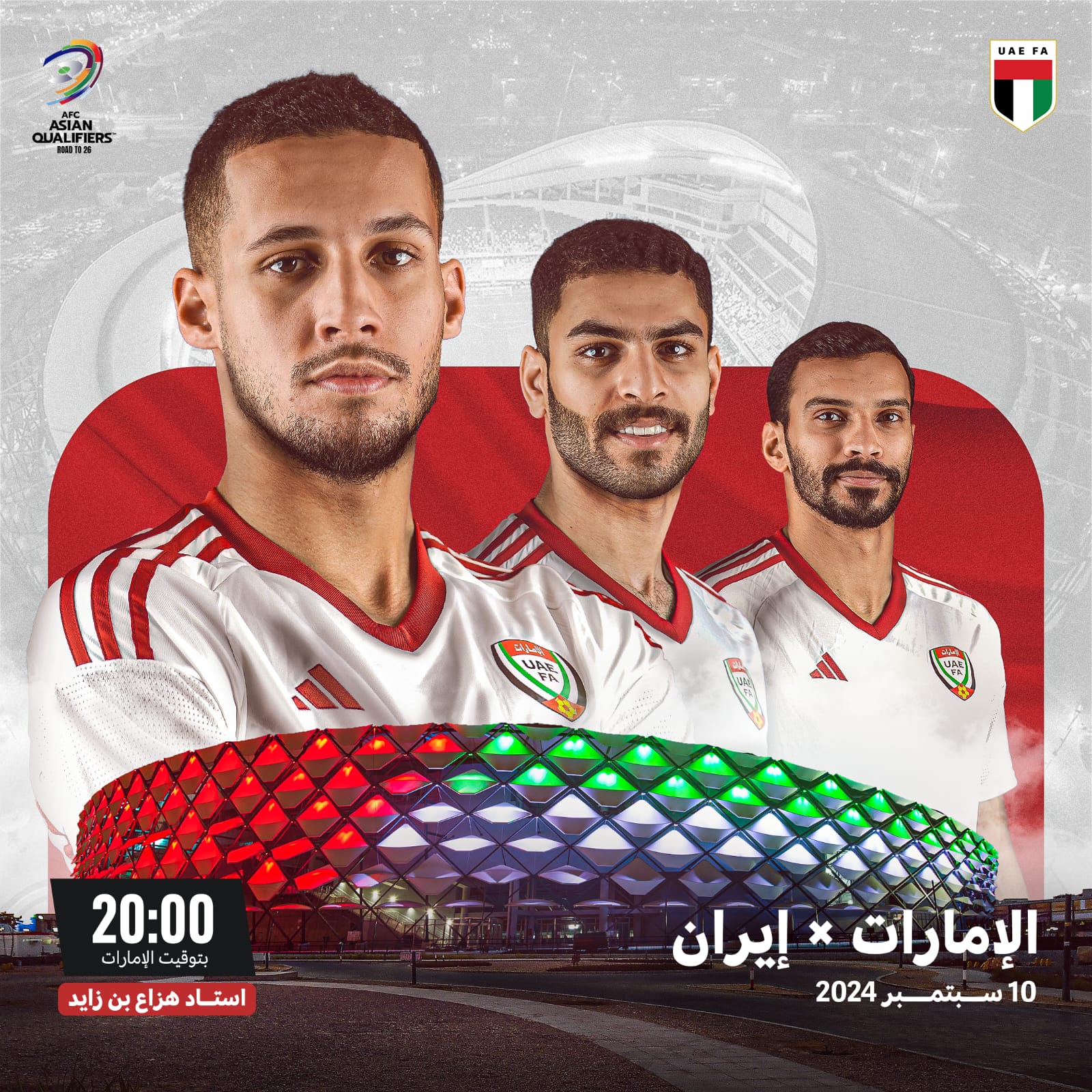 وقال اتحاد الكرة عبر صفحته الرسمية عبر منصة" إكس" مباراتنا مع منتخب إيران بتصفيات كأس العالم بنلعبها في استاد هزاع بن زايد يوم 10 سبتمبر".