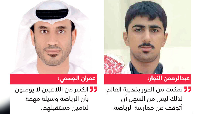 وقال الجسمي: «الكثير من اللاعبين لا يؤمنون بأن الرياضة وسيلة مهمة لتأمين مستقبلهم، كما أن العائلات غير متحمسة لاستمرار ذويها في ممارسة الرياضة لهذا السبب، والاكتفاء بأن تكون للترفيه فقط، إضافة إلى غياب ثقافة ممارسة الرياضة لأجل الاحتراف والفوز بميداليات دولية».