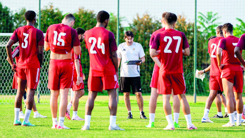 غوران يسدي تعليماته للاعبي عجمان في معسكر صربيا. من المصدر