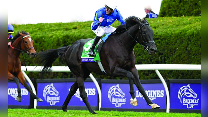 من فوز «ريبلز رومانس» بلقب سباق «بريدز كب تيرف» الأميركي الشهير. من المصدر