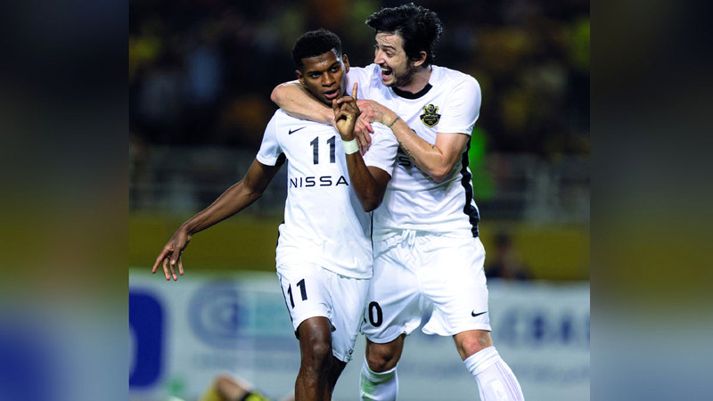 سردار أزمون ويحيى الغساني يحتفلان بالفوز على سباهان. من المصدر