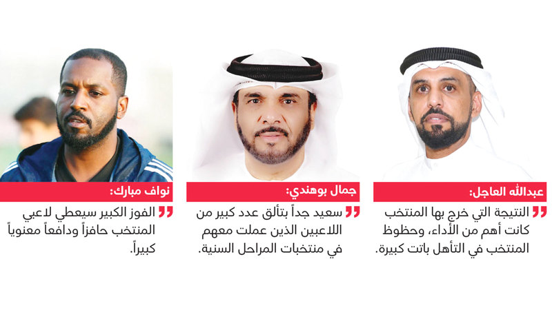 من جهته، أكد الحكم الدولي السابق مشرف فريق الإمارات سابقاً، عبدالله العاجل، أن النتيجة التي خرج بها المنتخب كانت أهم من الأداء، معتبراً أن حظوظ المنتخب في التأهل إلى المونديال باتت كبيرة، وأنها باتت بأقدام لاعبيه دون انتظار هدايا الآخرين، وأشار العاجل إلى أهمية ترسيخ ثقافة الفوز لدى لاعبي المنتخب.
