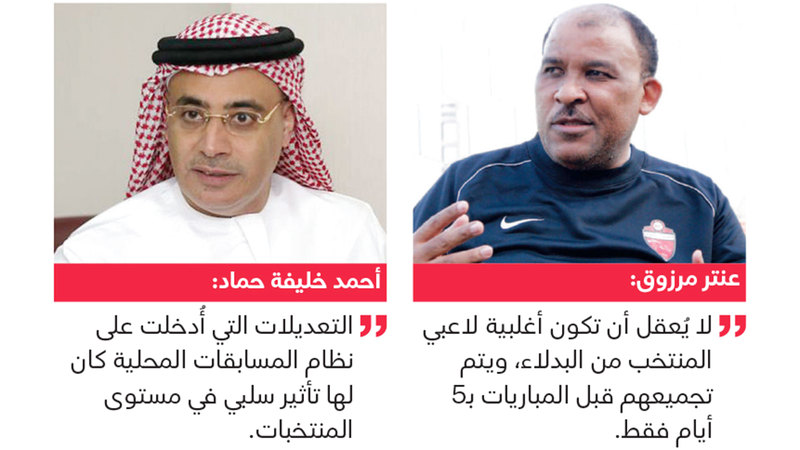 وقال: «اللاعب الأجنبي أخذ دوراً أكبر من اللاعب الوطني، وأصبحت أغلبية تشكيلة تلك المنتخبات من لاعبين لا يشاركون في المسابقات المحلية ويجلسون على مقاعد البدلاء، وهذا أضرّ كثيراً بمستويات المنتخبات الثلاثة، في وقت لا يوجد لدينا لاعبون محترفون في الخارج يمكن أن يكون لهم تأثير مباشر في المستوى والنتائج»، وأضاف: «منتخبا الإمارات والسعودية لديهما العديد من القواسم المشتركة، ومن بينها زيادة عدد اللاعبين الأجانب في الدوريات المحلية، ويعيشان حالة من عدم الاستقرار الفني، بكثرة تغيير المدربين مع كل إخفاق».