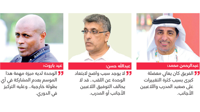 وقالوا لـ«الإمارات اليوم» إن «الوحدة مطالب في الموسم الحالي بتحقيق لقب الدوري، في الوقت الذي تتشتت الفِرَق المرشحة للقب بالمنافسات الخارجية».