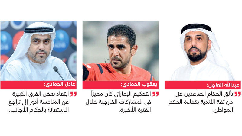 ويرى الحكم الدولي السابق في كرة القدم، يعقوب الحمادي، أن غياب الصافرة الأجنبية عن الدوري خلال الجولات الأخيرة يعود إلى الأندية، كونها صاحبة الحق في استقطاب الحكام الأجانب من عدمه، لافتاً إلى أن التحكيم الإماراتي شكّل حضوراً مميزاً في المشاركات الخارجية خلال الفترة الأخيرة، ما ينعكس بصورة إيجابية على التحكيم في الدوري المحلي.