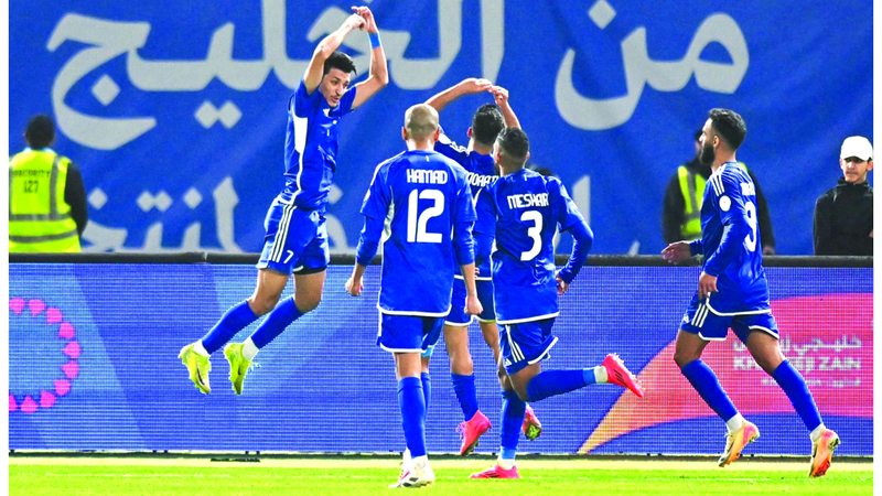 لاعبو الكويت يحتفلون بتسجيل هدفهم في مرمى قطر. من المصدر