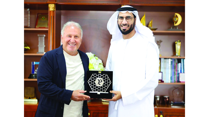 استعرض الشيخ محمد بن كايد القاسمي، رئيس دائرة التنمية الاقتصادية في رأس الخيمة، مع المدرب العالمي والنجم البرازيلي السابق، زيكو، التطوّر الذي تشهده الكرة العالمية، ومراحل نمو الكرة الإماراتية.