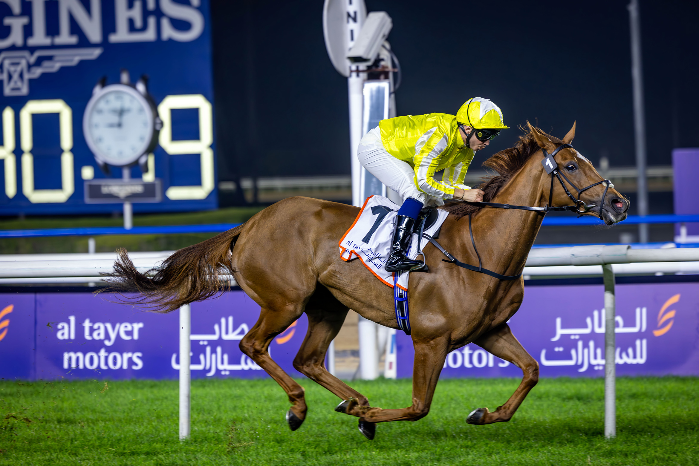 وعرف الفارس مايكل بارزالونا كيفية قيادة المهرة «تشويزيا» للهيمنة على مجريات الشوط الرئيس البالغ جوائزه 850 ألف درهم، وقطع خط النهاية بالمركز الأول بزمن بلغ دقيقة و40 ثانية و97 جزء من الثانية، بفارق بلغ 5.13 طول صاحبة المركز الثانية «رومانتيك ستايل» بشعار فريق «غودولفين» العالمي، وإشراف المدرب شارلي آبلبي، وقيادة الفارس وليام بيوك.