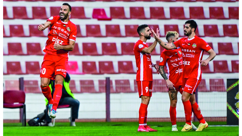 لاعبو شباب الأهلي يحتفلون بالفوز على الجزيرة. تصوير: باتريك كاستيلو