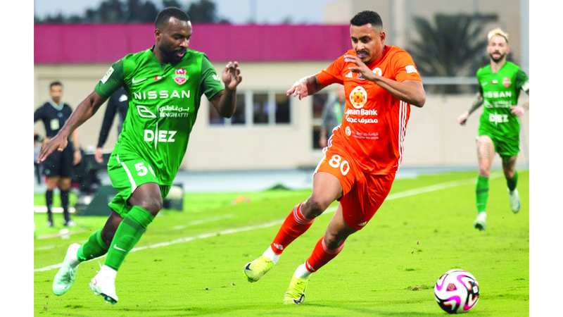 سعيد سليمان (يسار) قدم أداءً مميزاً في مباراة عجمان. تصوير: يماني العفاري