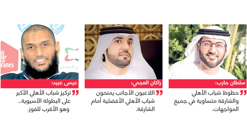 وأشار إلى أن «فرسان دبي» يمتلك أفضلية بسيطة، وقال: «يتميز شباب الأهلي بأنه يسير بنسق تصاعدي، ويتفوق في جانب أنه يمتلك أكبر عدد من اللاعبين الأجانب الجيدين، الذين قدموا إضافة كبيرة للفريق في جميع المراكز، بينما لا يمتلك الشارقة الجودة نفسها، فهناك لاعبون أجانب في صفوفه مستواهم يعد عادياً، ولا يمنح الفريق القوة المطلوبة، خصوصاً في النصف الثاني من الموسم الذي يحتاج إلى جهد مضاعف من اللاعبين».