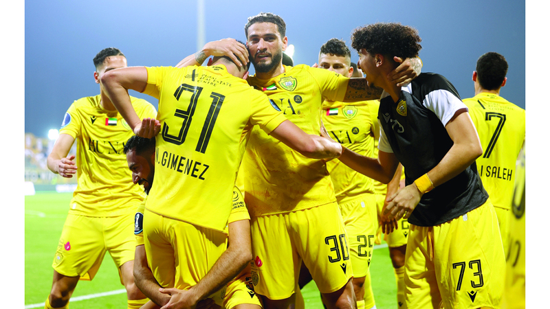 فرحة وصلاوية عارمة بهدف خيمينيز بمرمى الجزيرة في الدقيقة (90+1). تصوير: سالم خميس