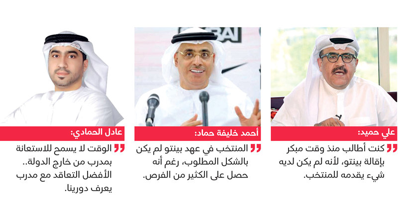 وأضافوا: «قرار اتحاد الكرة بإقالة المدرب البرتغالي جاء بسبب تراجع نتائج المنتخب، خصوصاً في الفترة الأخيرة بعدما خسر في هذه التصفيات ثلاث مباريات وفاز في أربع وتعادل مباراة واحدة، من أصل ثماني مباريات، لذلك فإن على اتحاد الكرة اختيار البديل الأنسب للمرحلة المقبلة، ويفضل أن يكون مدرباً من داخل الدولة، أو لديه معرفة كبيرة بالكرة الإماراتية».