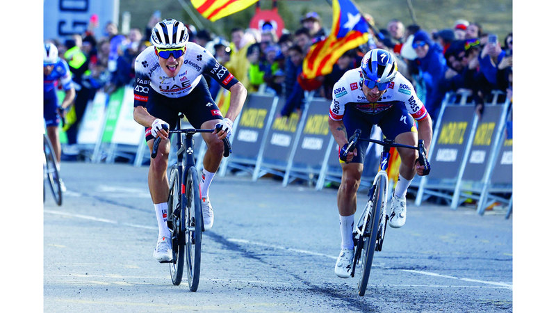 من ناحية أخرى، وفي سباق فولتا كاتالونيا في إسبانيا، أول من أمس أيضاً، واصل دراج فريق «الإمارات إكس آر جي» خوان أيوسو تألقه، محققاً فوزه السادس هذا الموسم، بعد منافسة مثيرة ضد بريموش روغليتش من فريق «ريد بول - بورا - هانسجروه» في انطلاقتهما نحو خط النهاية على القمة في لا مولينا خلال المرحلة الرابعة.