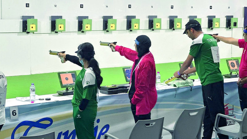 خلال مشاركة منتخب الرماية بفئة المسدس الهوائي في البطولة العربية العام الماضي. من المصدر