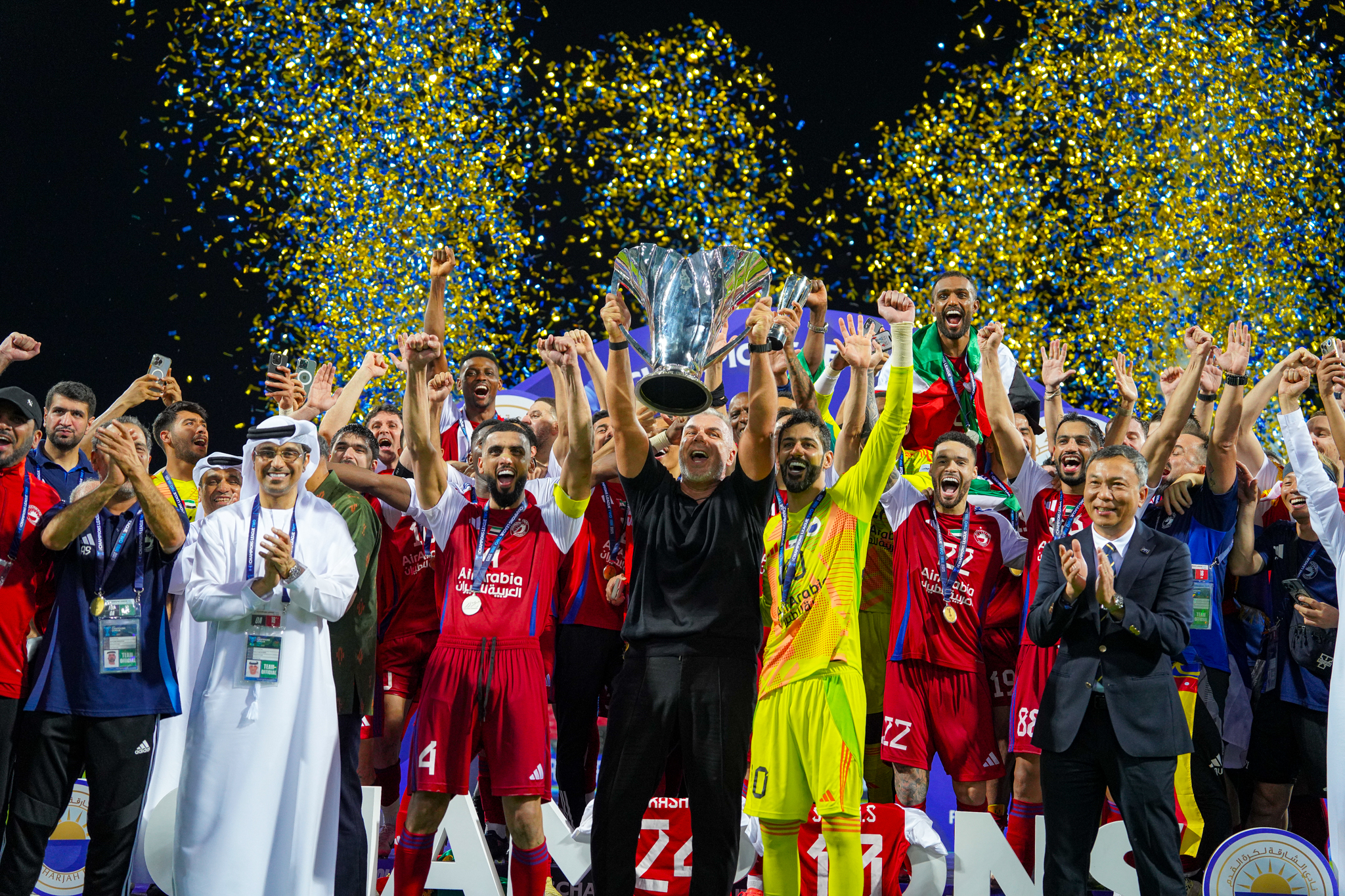 - (الدقيقة 90+7) "الملك" يتقدم بالهدف الثاني بمجهود فردي من ميلوني وفرحة عارمة لأسرة نادي الشارقة في ملعب بيشان باللقب القاري التاريخي.