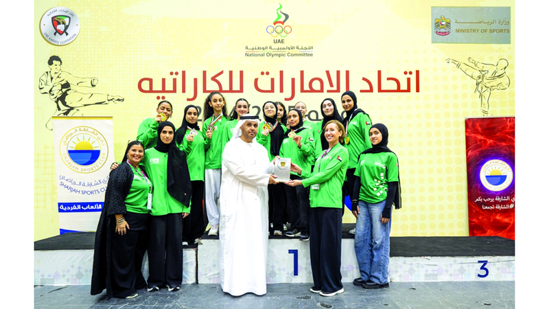 خلال تتويج لاعبات «شرطة دبي» بدرع «دوري السيدات» للكاراتيه. من المصدر