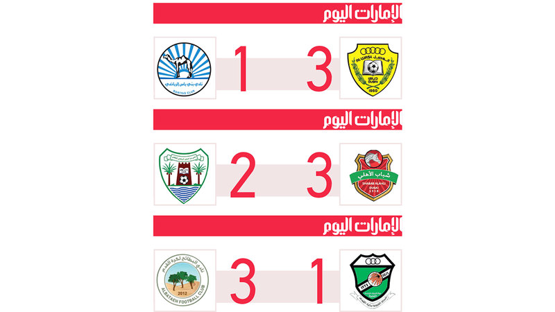 من جانبه، تجاوز شباب الأهلي مفاجآت ضيفه دبا الحصن، ونجح في تحقيق فوز مثير بنتيجة 3-2، في المباراة التي جمعتهما على استاد راشد.