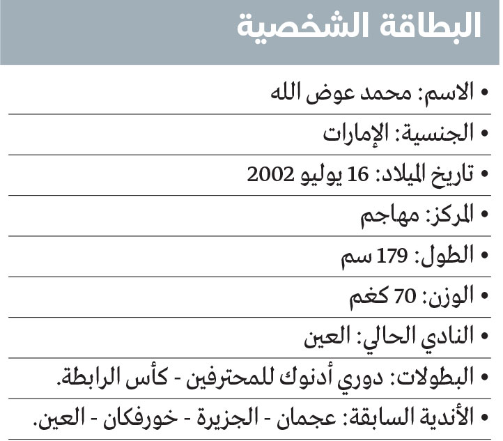 وفي ختام حديثه، أضاف عوض الله: «أكرر تقديري وامتناني لنادي العين الذي منحني هذه الفرصة الاستثنائية، وكان داعماً رئيساً في كل خطوة، وأسأل الله التوفيق، ولكل من كان جزءاً في هذه الرحلة.. شكراً من القلب».