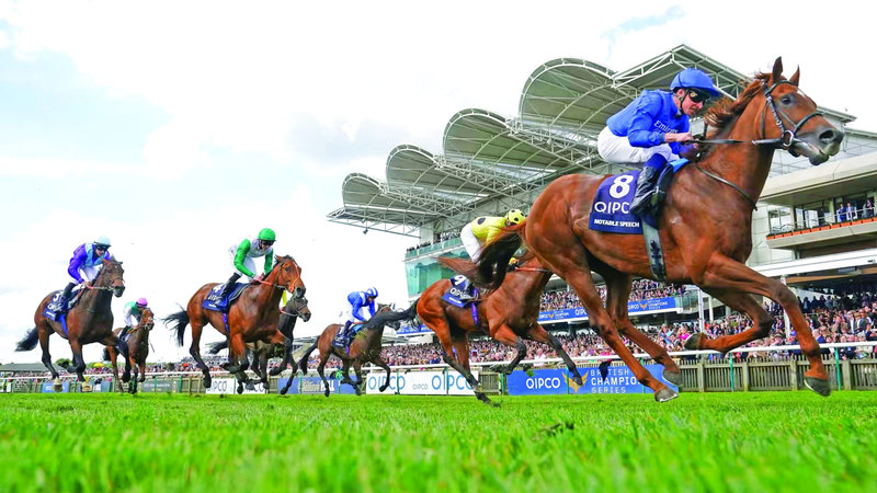 جانب من انتصار الجواد «نوتابل سبيش» الموسم الماضي بلقب سباق «2000 غينيز الإنجليزي». من المصدر