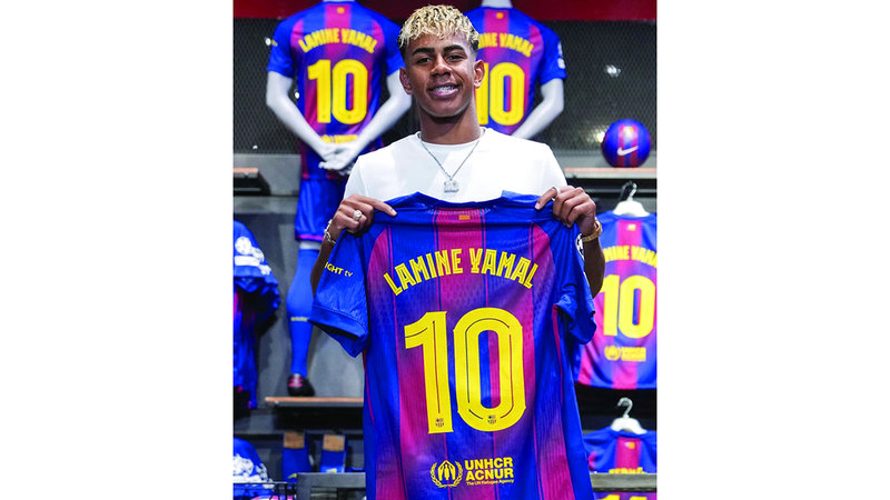 بعد ثلاثة أيام من بلوغه الـ18، تلقى لامين جمال الهدية الأبرز على الإطلاق من فريقه برشلونة بطل الدوري الإسباني لكرة القدم: القميص الأسطوري رقم 10.