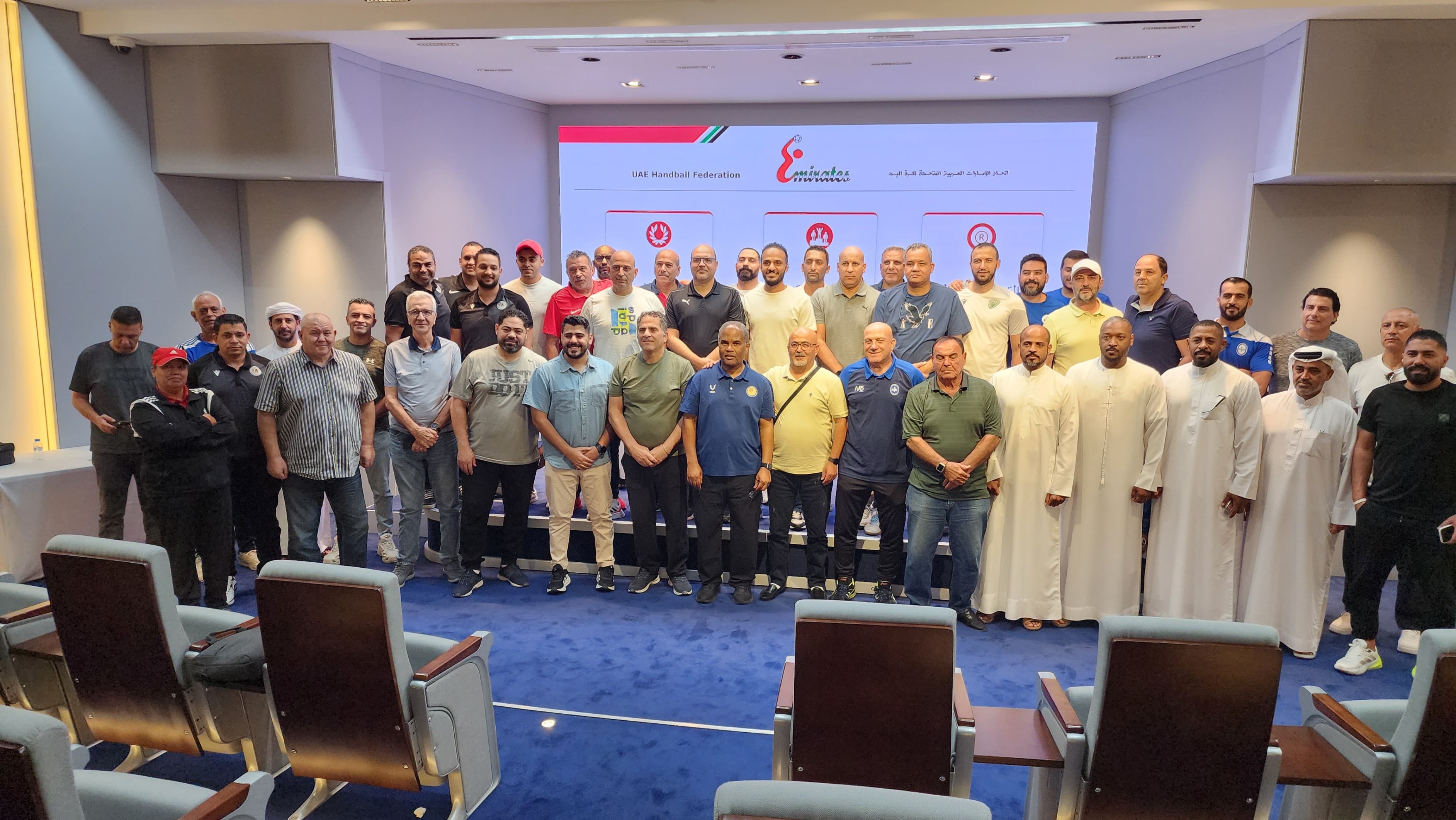 نظم اتحاد كرة اليد، ورشة عمل، لمدرب الأندية، عقدت اليوم السبت، في مقره مركز إعداد القادة بدبي، ورشة عمل لمدربي الأندية، تولى خلالها شرح أخر التعديلات على القانون الدولي الجديد للعبة، والذي دخل حيز التنفيذ من الأول من يوليو الماضي، وذلك قبل انطلاقة الموسم الجديد للرجال والمراحل السنية الذي يستهل أواخر الشهر الجاري.