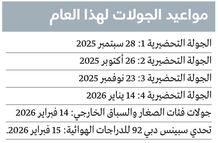 ومن المتوقع أن يكون موسم 2025-2026 مميزاً بالنسبة لعشاق رياضة الدراجات الهوائية، حيث تتاح للمشاركين الفرصة للتنافس والتدريب ضمن سلسلة من الأحداث الرئيسة في الأشهر التي تسبق الحدث المرتقب، إذ تقام جميع الجولات التحضيرية في مضمار القدرة للدراجات الهوائية.