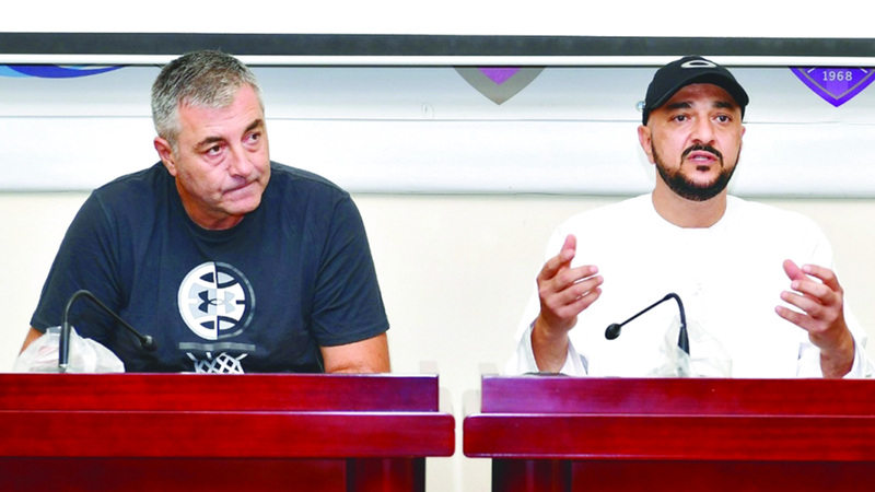 فرج يقدّم المدرب الصربي الجديد غوشا للاعبي الفريق الأول لسلة الجزيرة. من المصدر