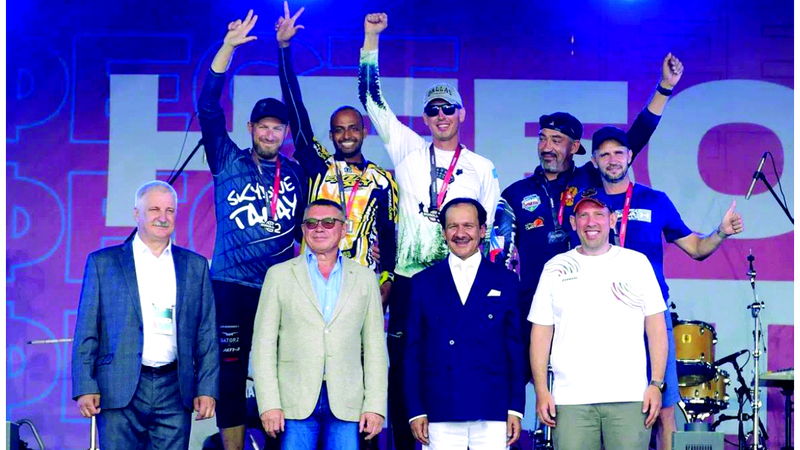 القبيسي على منصة التتويج بحضور الحمادي. من المصدر