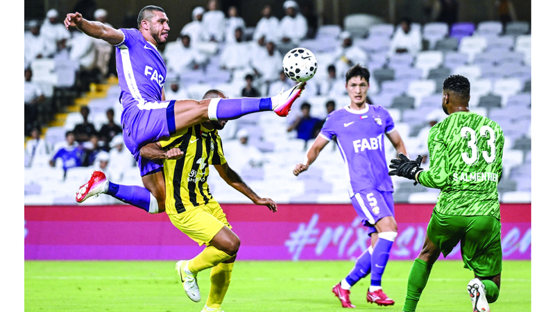 لاعب العين المصري رامي ربيعة يحاول التسجيل في مرمى كلباء. تصوير: باتريك كاستيلو