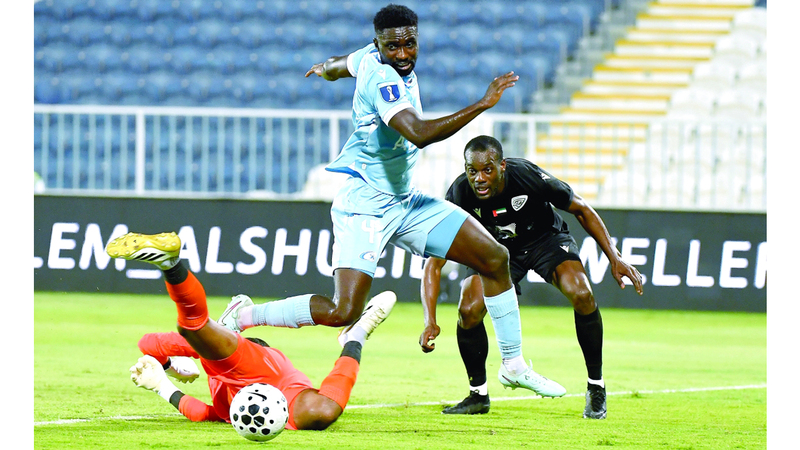 هجمة لبني ياس نحو مرمى خورفكان لم يكتب لها النجاح. تصوير: إريك أرازاس