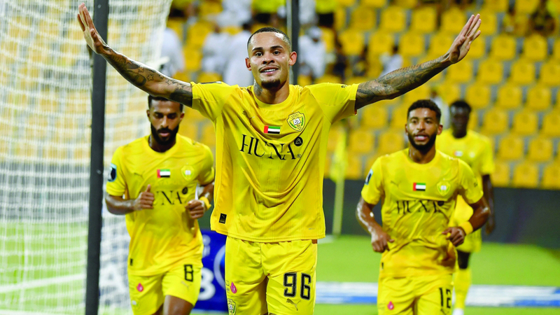 ريناتو جونيور خلال احتفاله بتسجيل هدف في مرمى الظفرة. تصوير: باتريك كاستيلو