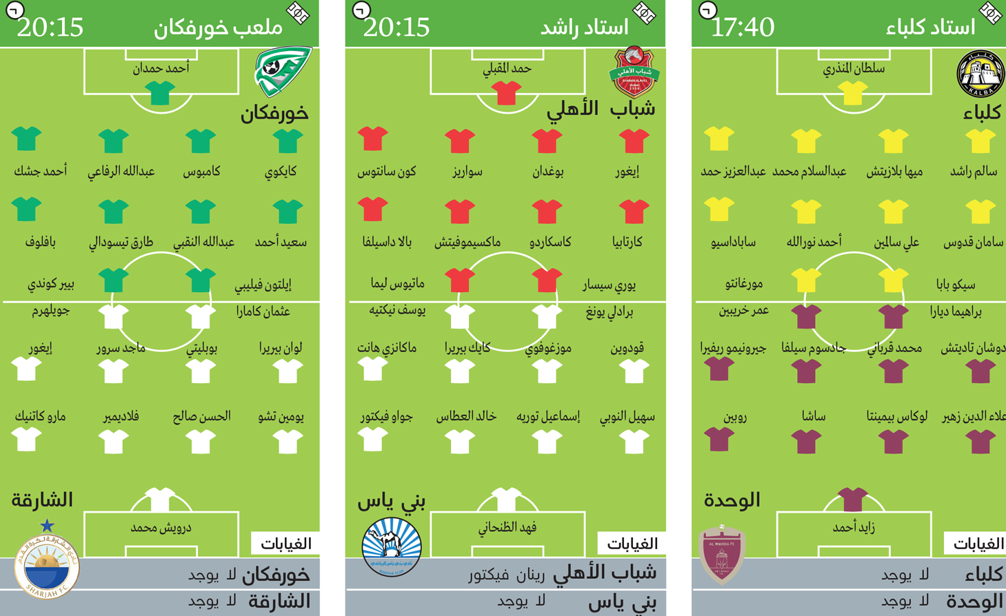 شباب الأهلي والوحدة يتسلحان بـ «كلين شيت» أمام بني ياس وكلباء