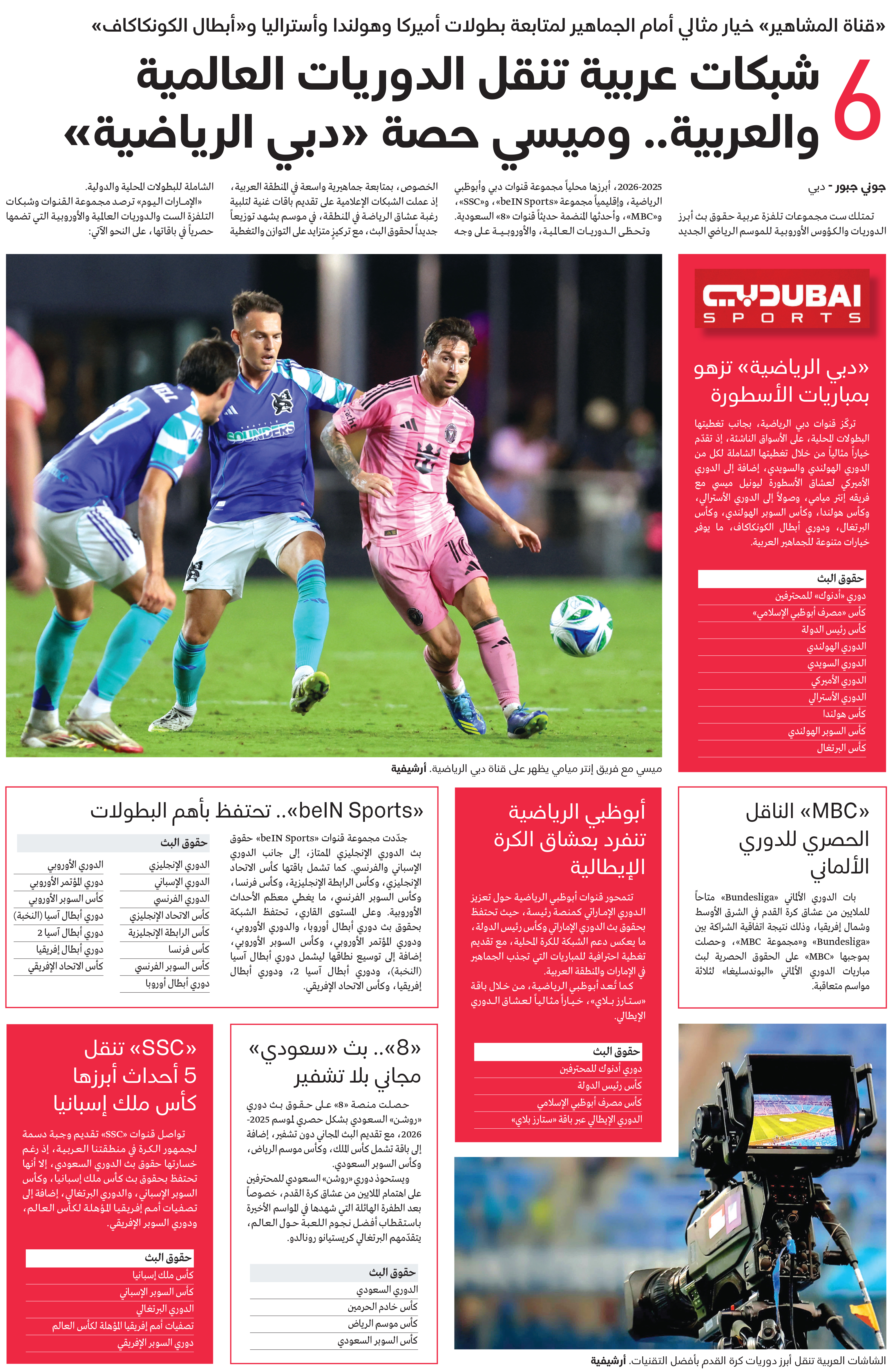 6 شبكات عربية تنقل الدوريات العالمية والعربية.. وميسي حصة «دبي الرياضية»