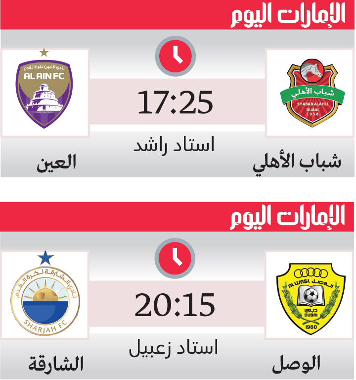 مواجهة اليوم هي الخامسة بين شباب الأهلي والعين التي تُقام يوم خميس. الإمارات اليوم