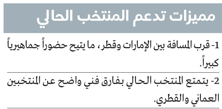 وتطرّق سالم ربيع للأنشودة الرياضية «منصور»، التي كانت أحد أبرز الأناشيد الرياضية التي أسهمت في تعزيز الثقة لدى اللاعبين والجمهور، وتقوية حظوظ المنتخب للصعود، وهي تتشابه مع حملة «حلم وطن» التي أطلقها اتحاد كرة القدم، مؤكداً أن المنتخب الحالي يتمتع بفارق فني واضح عن المنتخبين العماني والقطري، كشفته المواجهات المباشرة.