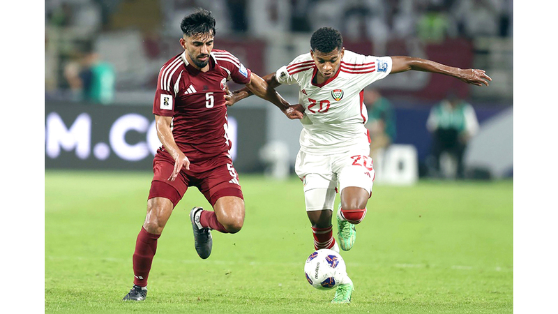 من لقاء الإمارات وقطر في المرحلة الثالثة للتصفيات المؤهلة للمونديال. تصوير: سالم خميس