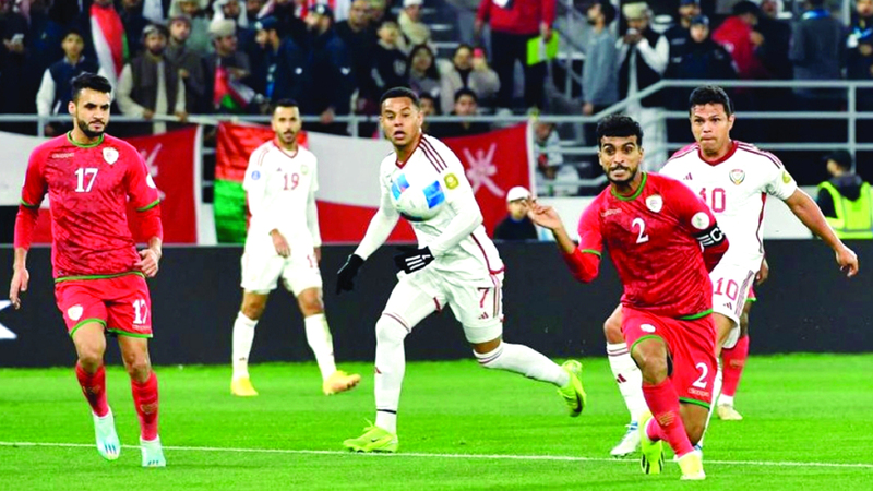 من لقاء المنتخب الوطني وعُمان في «خليجي 26» ديسمبر الماضي. تصوير: سالم خميس