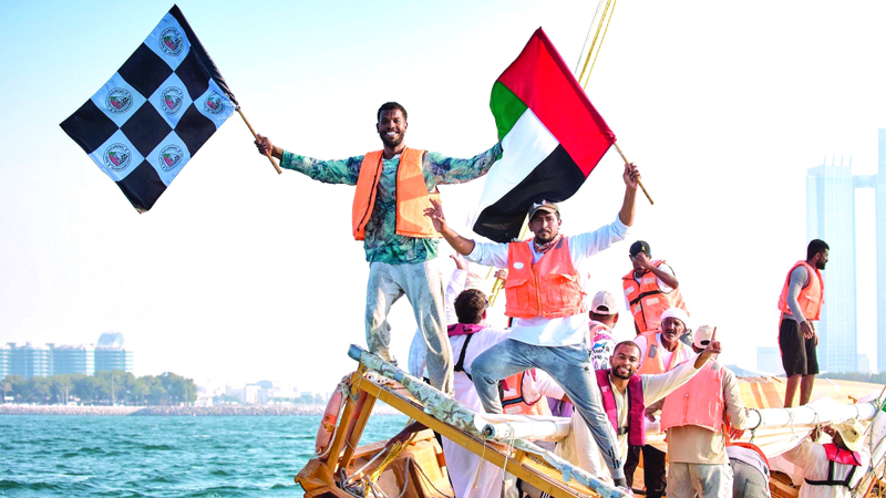 طاقم «شاهين 57» يحتفل بلقب سباق غناضة للمحامل الشراعية فئة 60 قدماً. وام